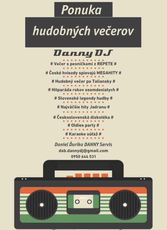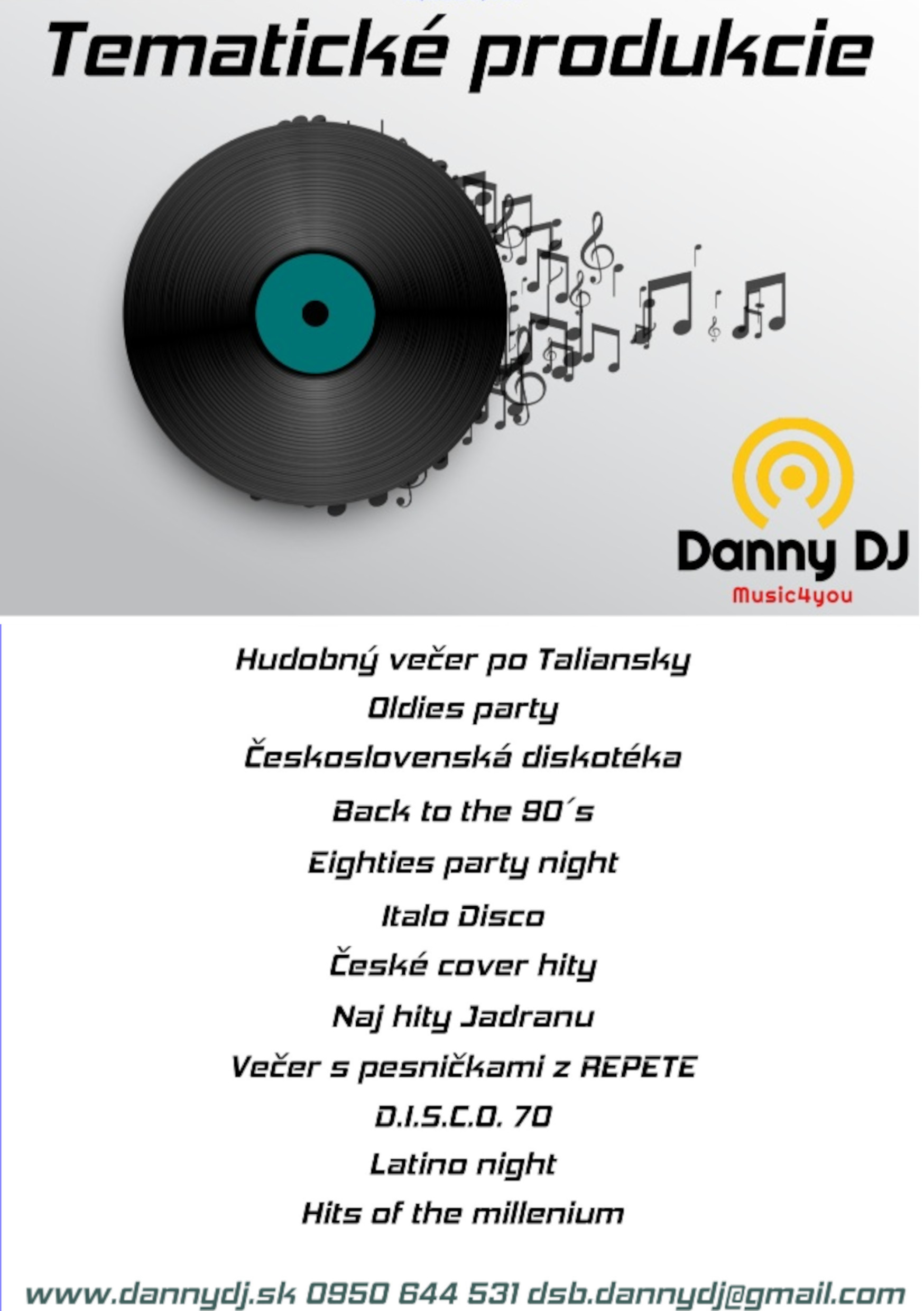 Či chcete Vašich hostí zabaviť tanečnou hudbou v nejakom štýle, alebo potrebujete len hudobný podmaz pre dotvorenie dokonalej atmosféry napríklad na módnu prehliadku vieme vyhovieť Vašim potrebám ....